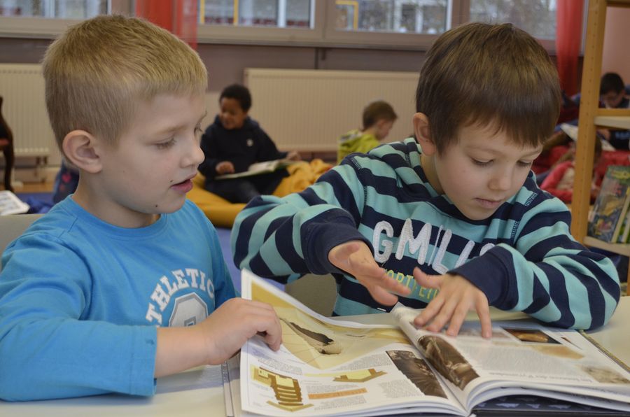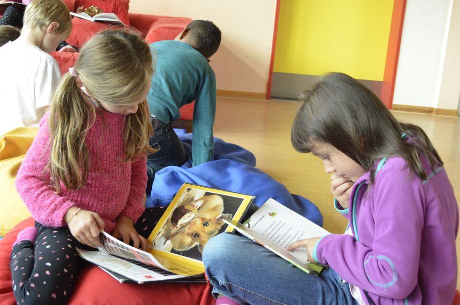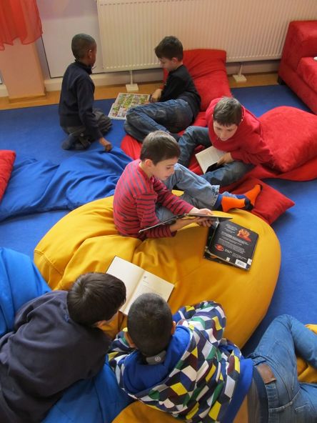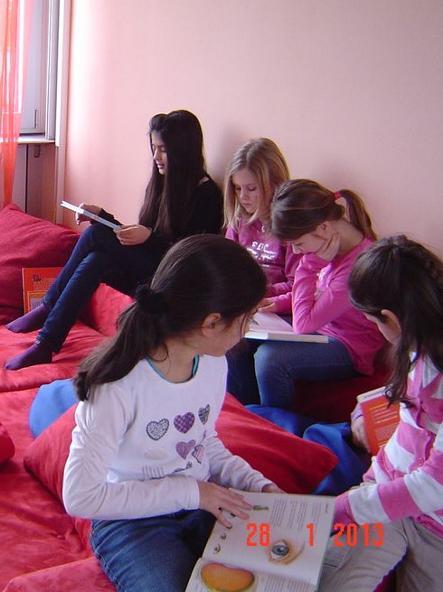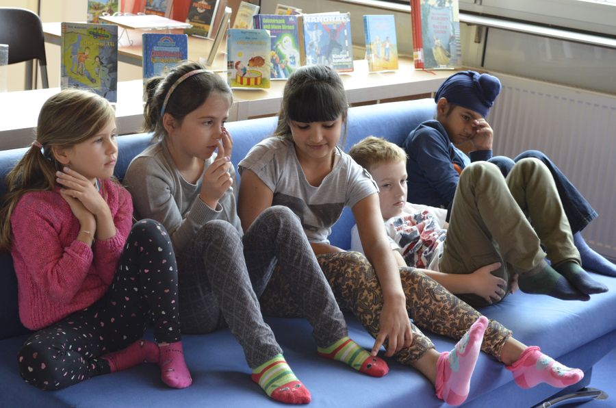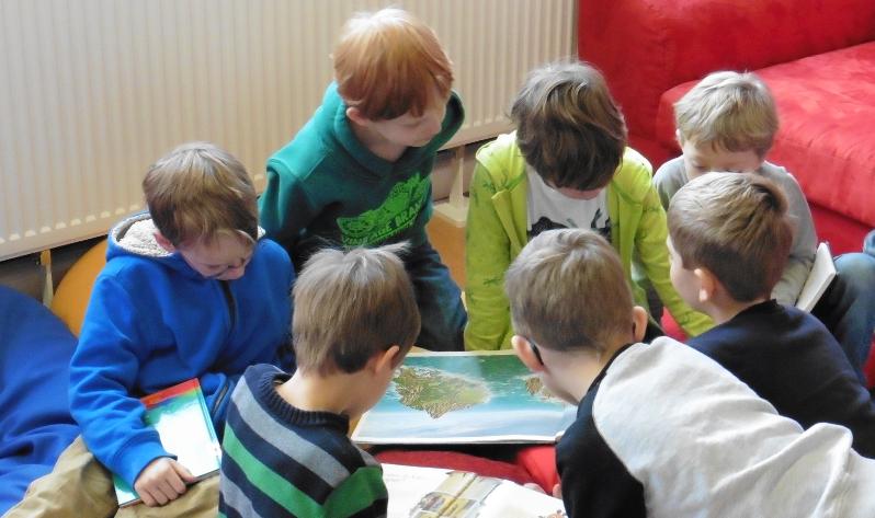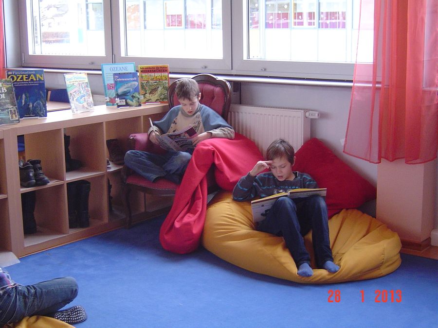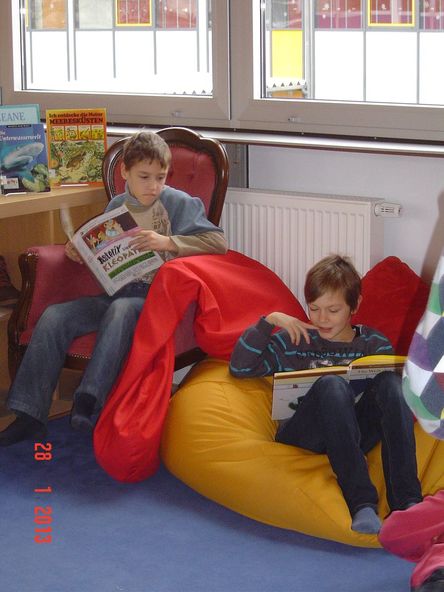 Hier ist gerade die damalige 4d mit Frau Pogadl in der Bücherei...