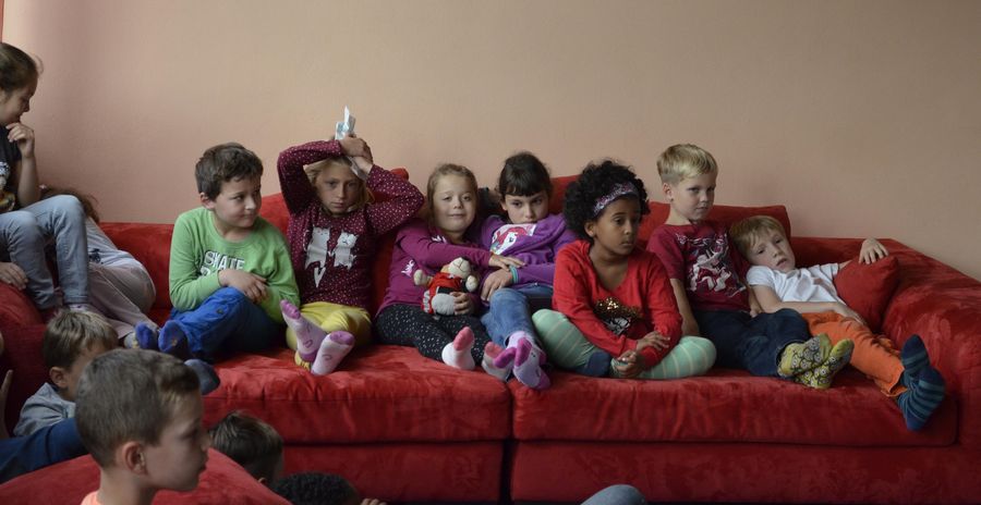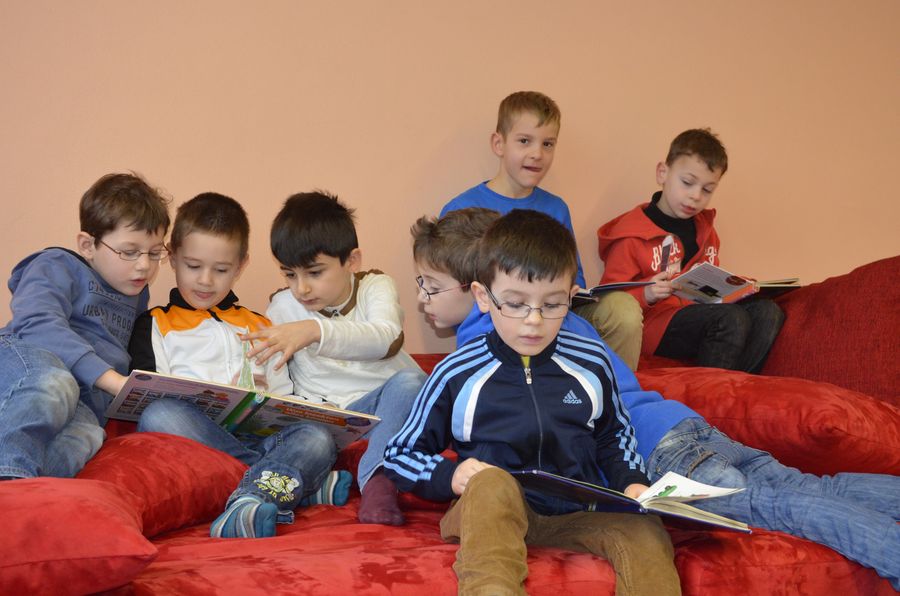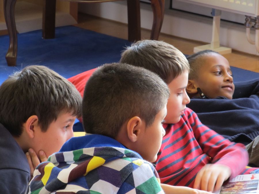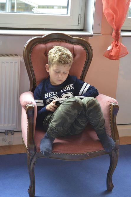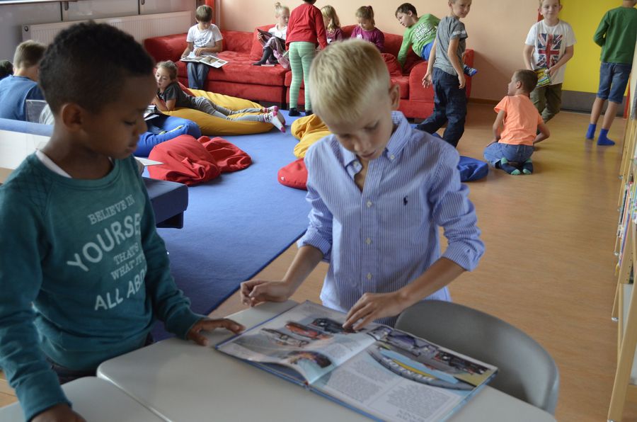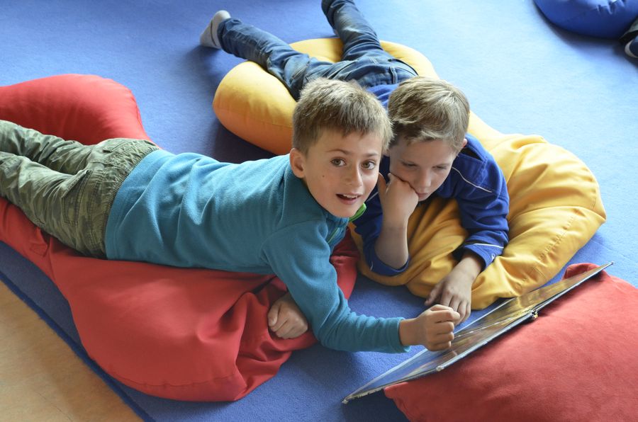 Hier ist gerade die damalige 4d mit Frau Pogadl in der Bücherei...