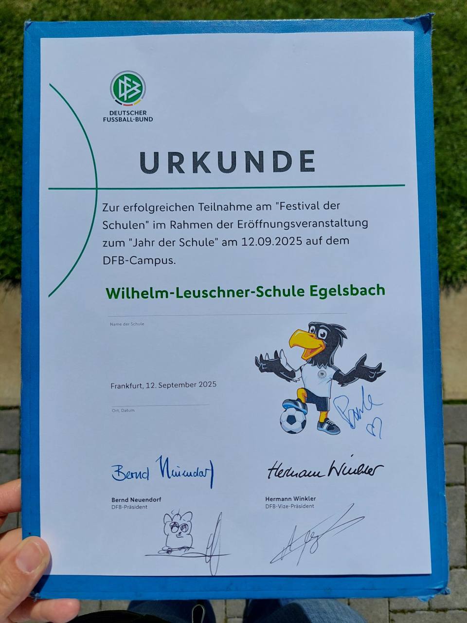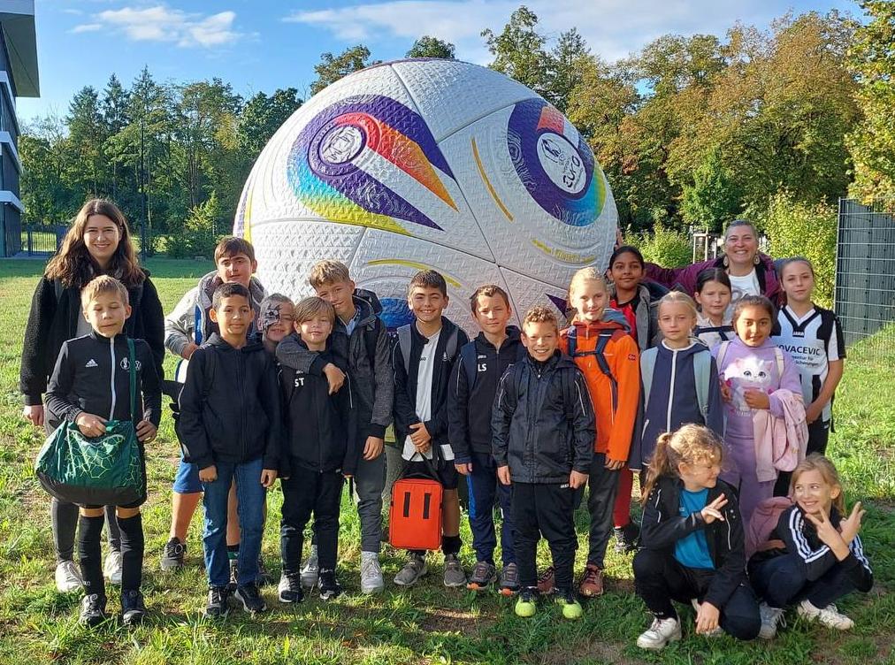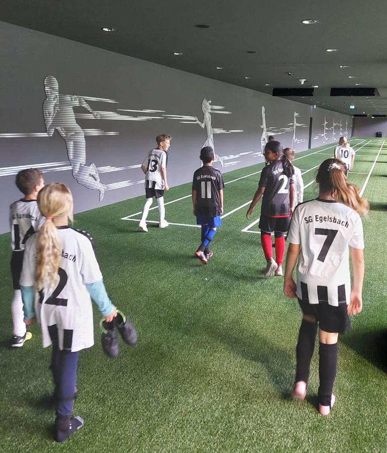 Aus rund 100 Bewerbungen gehörte die Klasse 4f der WLS Egelsbach zu den acht teilnehmenden Schulklassen, die an diesem Tag am Fußballturnier (3 gegen 3) teilnahmen. Die Kinder durften auch einen Blick hinter die Kulissen des DFB-Campus richten. Da Frau Schultheis-Schauer an diesem Tag für die GEW im Einsatz war, begleiteten Frau Held und Frau Machner die Kinder nach Frankfurt.