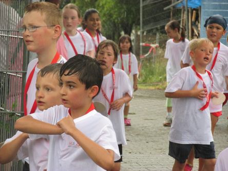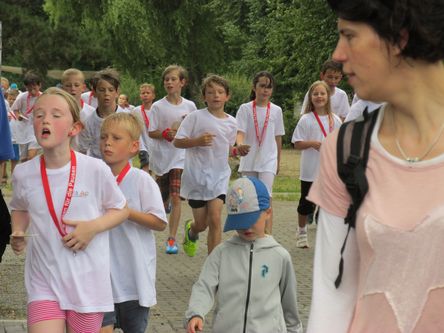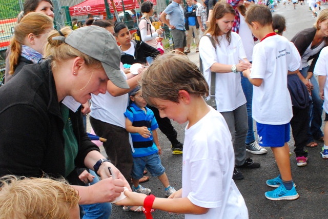 Die Klassenlehrer standen bereit, um jede gelaufene Runde zu beglaubigen.